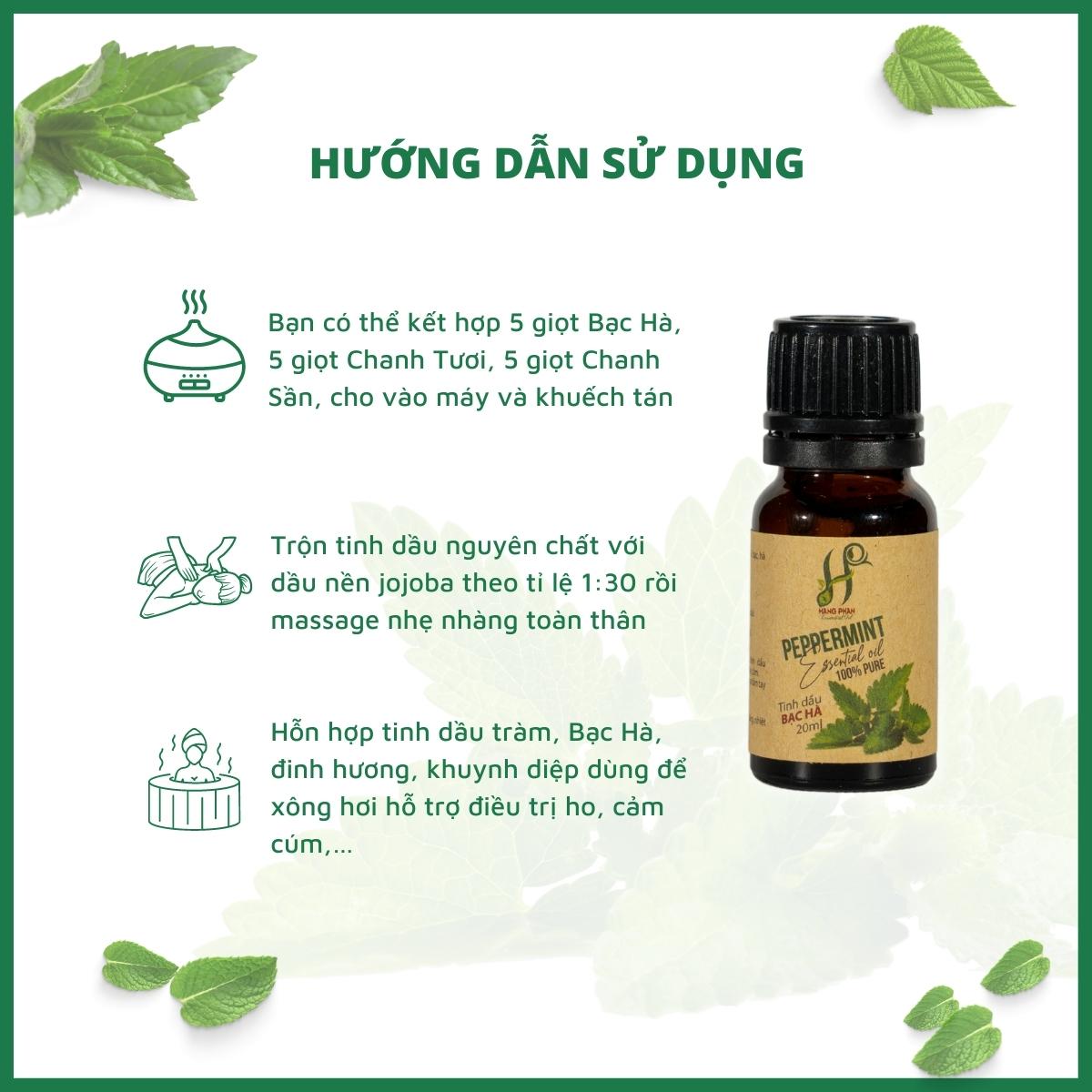 - Thành phần: 100% từ cây bạc hà bằng phương pháp chưng cất hơi nước.